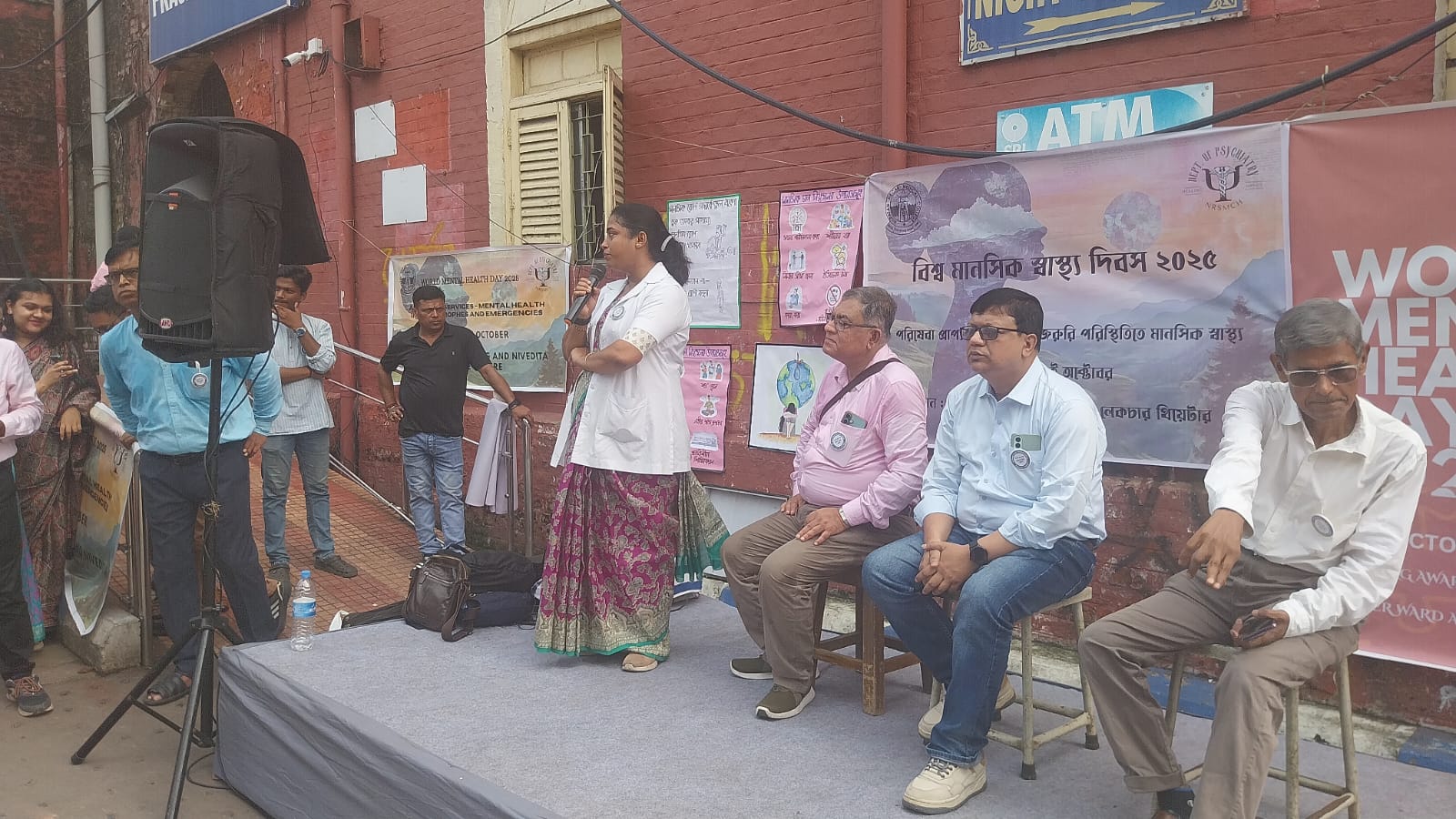 শুক্রবার কলকাতার শিয়ালদহ এলাকার এনআরএস হাসপাতালে মহাসমারোহে পালিত হলো বিশ্ব মানসিক স্বাস্থ্য দিবস । এদিন সকালে অধ্যাপক -চিকিৎসক – ডাক্তারি পড়ুয়া – নার্সরা বিভিন্ন জনসচেতনতামূলক ব্যানার নিয়ে সংশ্লিষ্ট হাসপাতালের প্রতিটি পথ ঘুরেন।এরপর শতাধিক রোগী পরিবার সহ অন্যান্যদের সামনে অস্থায়ী মঞ্চে মানসিক স্বাস্থ্য নিয়ে বক্তব্য রাখেন চিকিৎসকরা। শ্রুতি নাটকে – কবিতায় – বক্তৃতায় মানসিক রোগে যথাযথ চিকিৎসা সহ রোগীদের প্রতি যত্নবান হওয়ার বার্তা দেওয়া হয় ।এই সভায় উপস্থিত ছিলেন এনআরএস হাসপাতালের মানসিক বিভাগের বিভাগীয় প্রধান অধ্যাপক ডক্টর আশীস মুখোপাধ্যায়, অধ্যাপক ডক্টর ইন্দিরা দে (পাল),অধ্যাপক ডক্টর মানবেন্দ্র সরকার, অধ্যাপক সুরঞ্জনা সুর মুখার্জি, ডক্টর শুক্লা নাথ,ডক্টর আতিয়ার রহমান প্রমুখ। নিউরো সাথে মানসিক স্বাস্থ্যের গভীরতা, মনের যত্ন নেওয়া, নিজেদের দুশ্চিন্তামুক্ত গড়া প্রভৃতি বিষয়ে আলোকপাত করা হয় এদিন।
