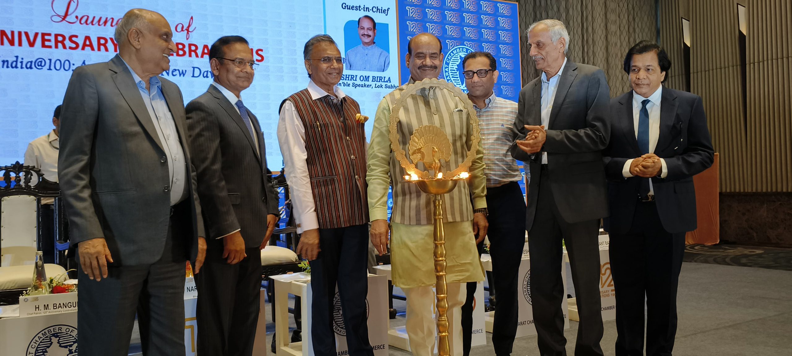 ভারত চেম্বার অব কমার্সের ১২৫ বছর পূর্তি উপলক্ষে আজ একটি কলকাতার বেসরকারি হোটেলে ভারতের সংসদ ভবনের অধ্যক্ষ মাননীয় ওম বিড়লা মহোদয় ও অন্যান্য নেতৃবৃন্দ | ছবি সুবল সাহা