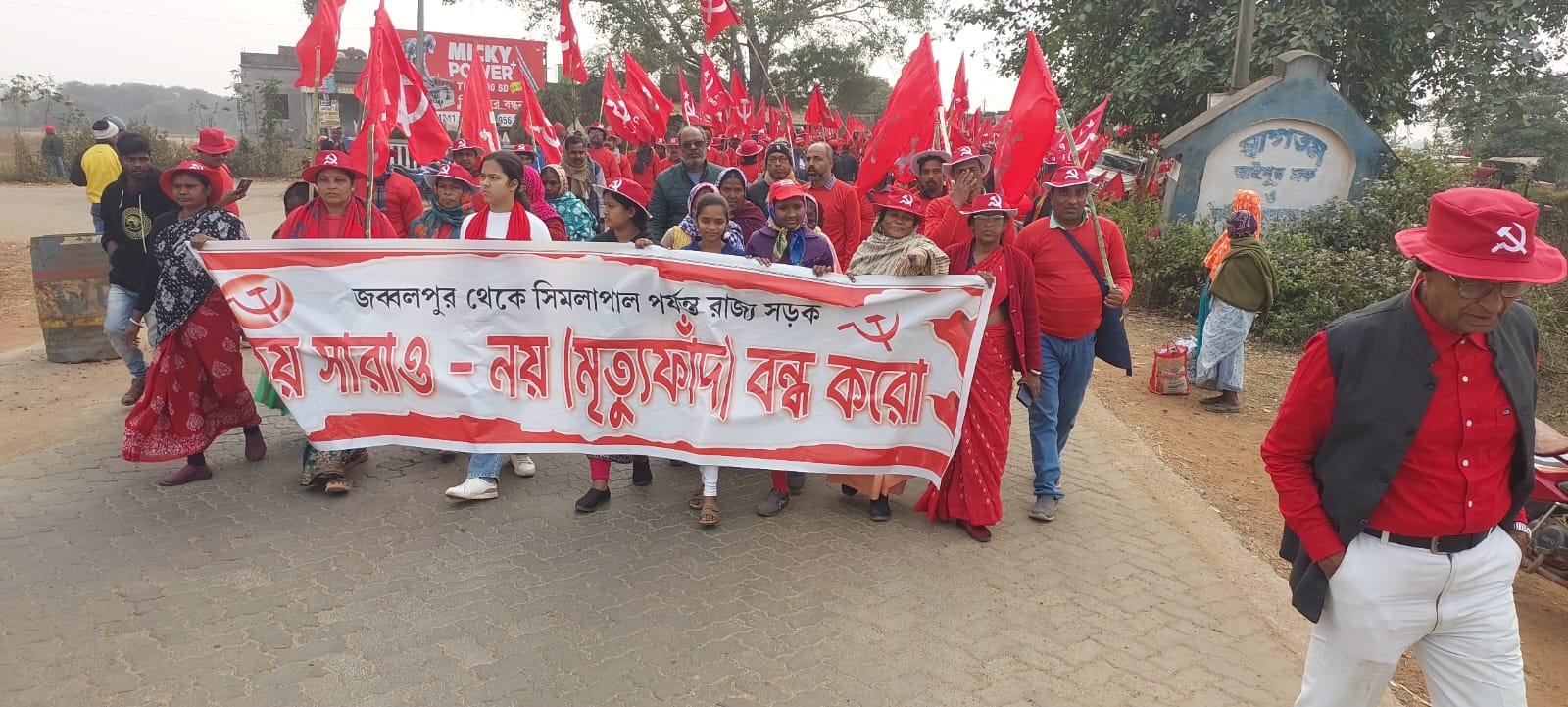 বাঁকুড়া- ঝাড়গ্রাম ৯ নম্বর রাজ্য সড়কে রাস্তা সংস্কারের দাবিতে পদযাত্রা সিপিআইএম এর।