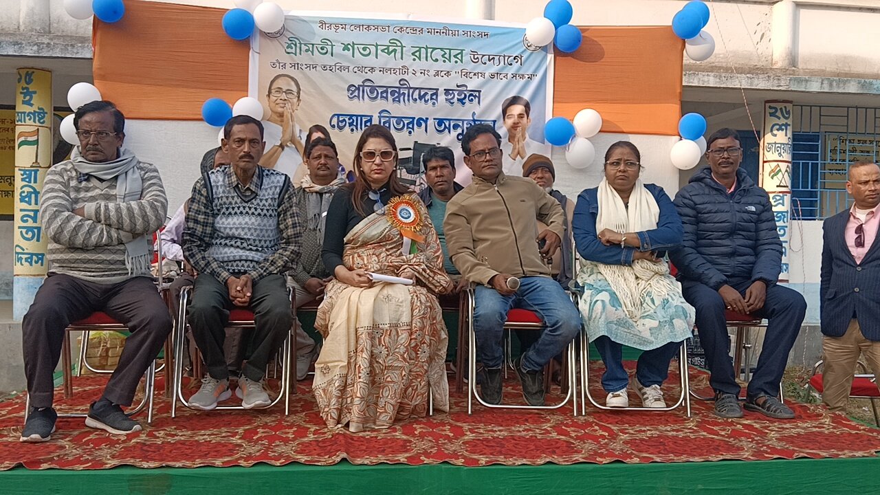 তারাপীঠে ও লোহাপুরে শতাধিক শারীরিক প্রতিবন্ধী ব্যক্তিদের হুইলচেয়ার ও ট্রাই সাইকেল তুলে দিলেন নিজের সাংসদ তহবিল থেকে সংসদ শতাব্দী রায়।